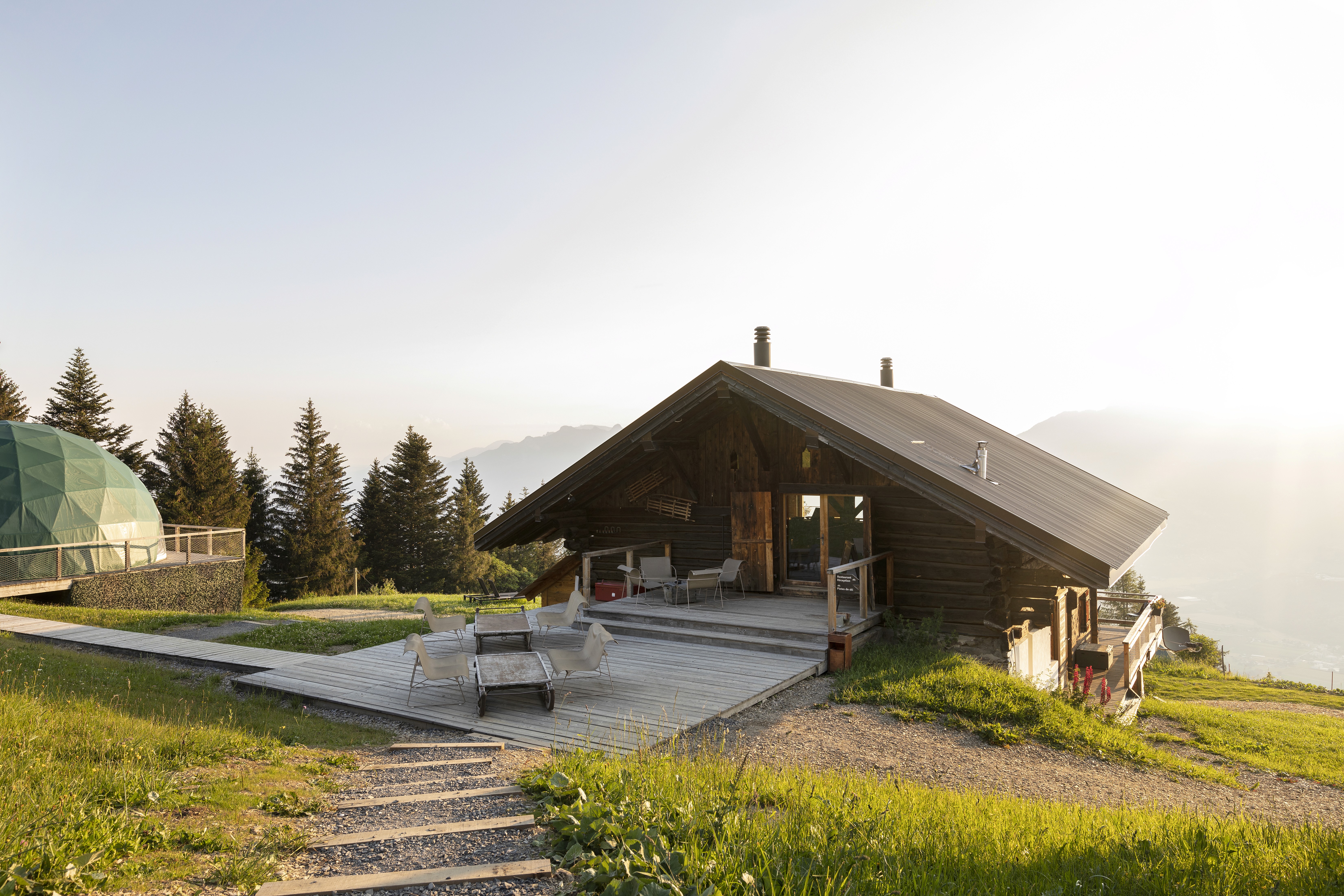 Whitepod Original, ce sont des dômes privés, une vue dégagée sur les Alpes et une atmosphère sans bruit superflu. Tout concourt à des échanges profonds : concentration, recul, énergie.